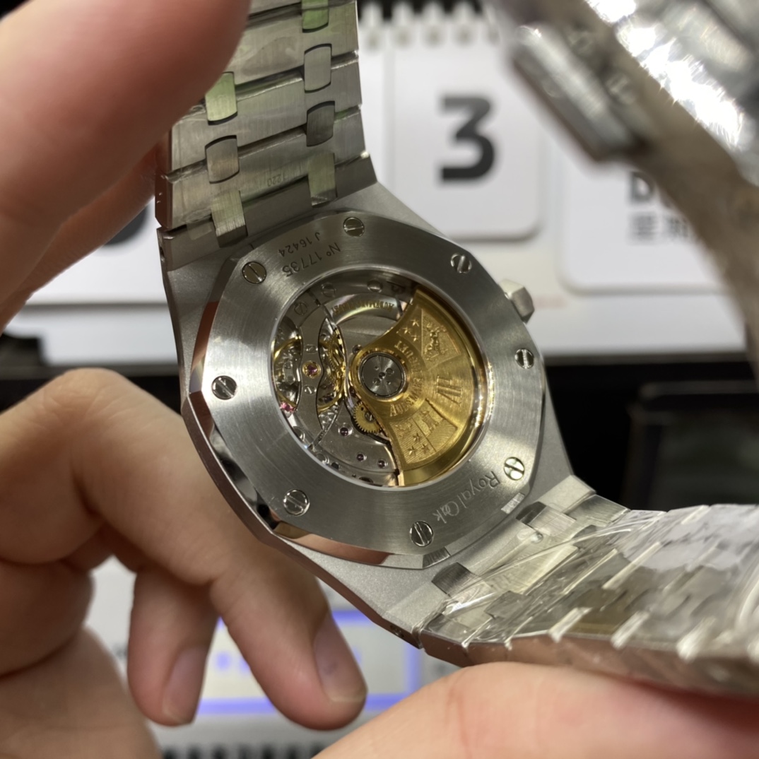 ·Dial Material: Blue Dial with Grande Tapisserie Pattern, White Gold Luminescent Hour Markers, and Royal Oak Hands