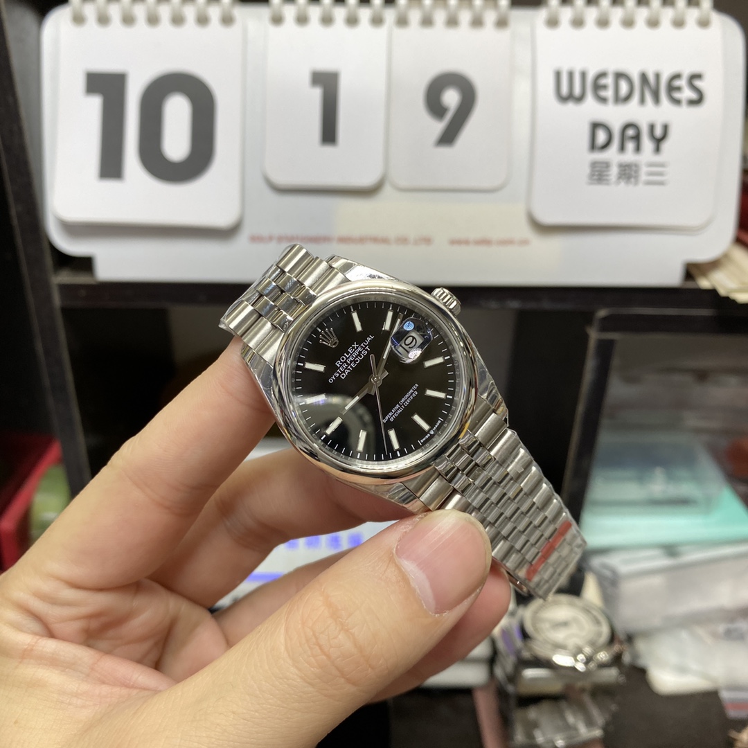 • Rolex Datejust Series m126200-0003, Black Dial with Fluted Bezel and Five-link Bracelet, 36mm Size.