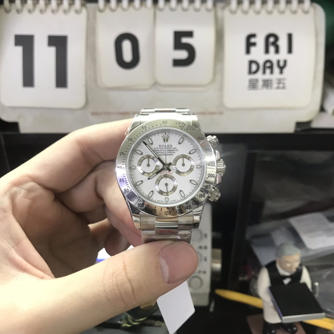 Rolex Cosmograph Daytona Series with white dial 904L steel Bezel, 40 mm size.