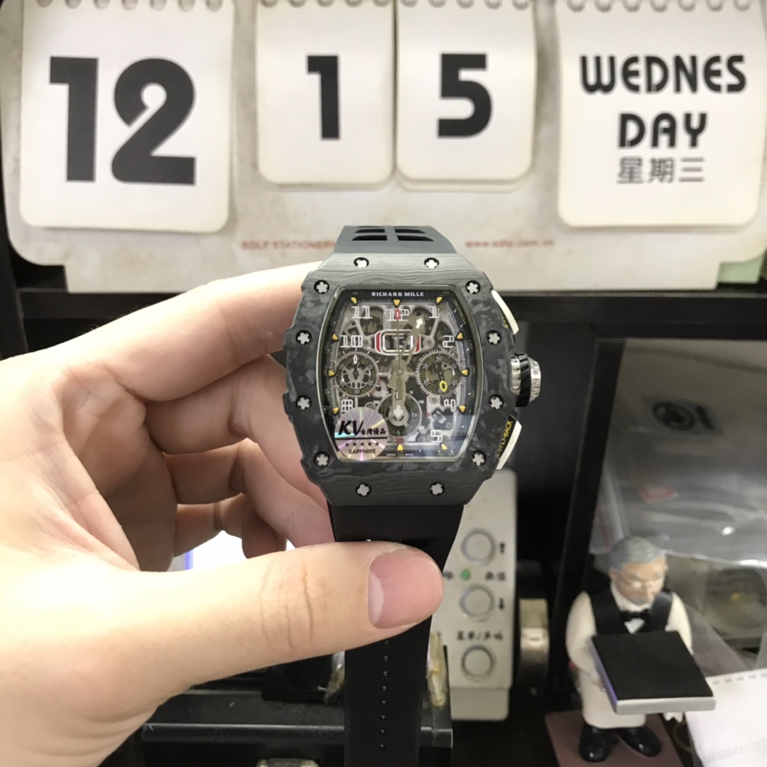 Richard Mille Men's Collection series RM 11-02 SHANGHAI, Black Panda Dial with Carbon Fiber Case, 50×42.70mm size